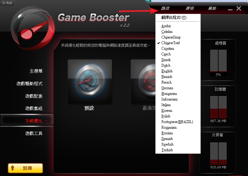 下載免費的遊戲加強軟體http://www.iobit.com/gamebooster.html